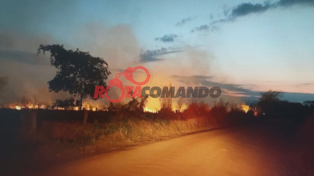Na manhã deste sábado (06), por volta das 5h30, um incêndio de grandes proporções foi registrado em uma área de pastagem no km 02 da BR-429, linha 21, na zona rural de Costa Marques (RO).