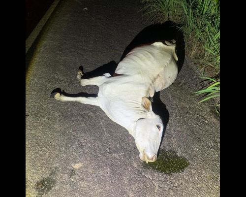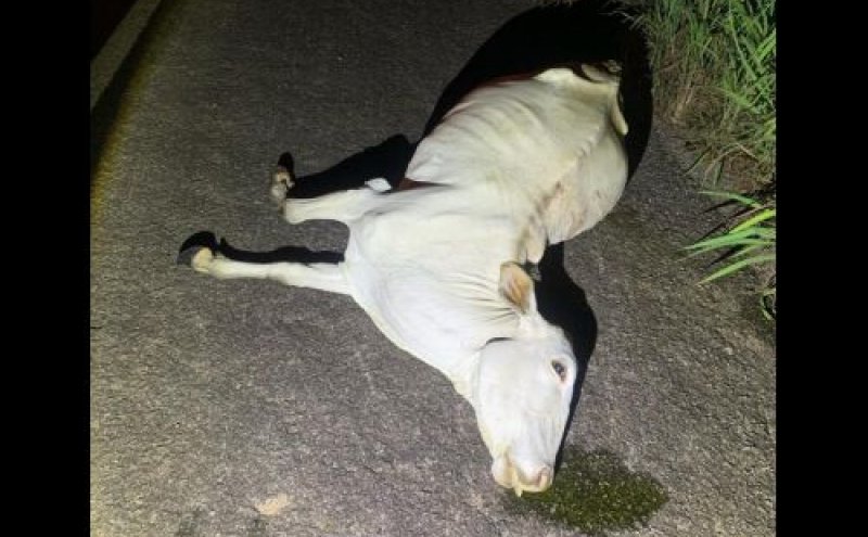 A guarnição de serviço deslocou-se imediatamente ao local, constatando a veracidade dos fatos. Durante a averiguação, identificou-se que o bovino era uma fêmea e possuía marcação com as iniciais HB. O veículo sofreu avarias em razão da colisão.