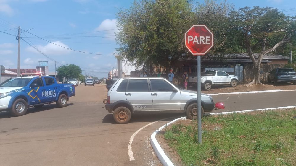 Na manhã desta quarta-feira (24), a Polícia Militar foi acionada via 190 para atender a um acidente de trânsito ocorrido no cruzamento das ruas Chico Mendes e Sete de Setembro, em São Francisco do Guaporé.